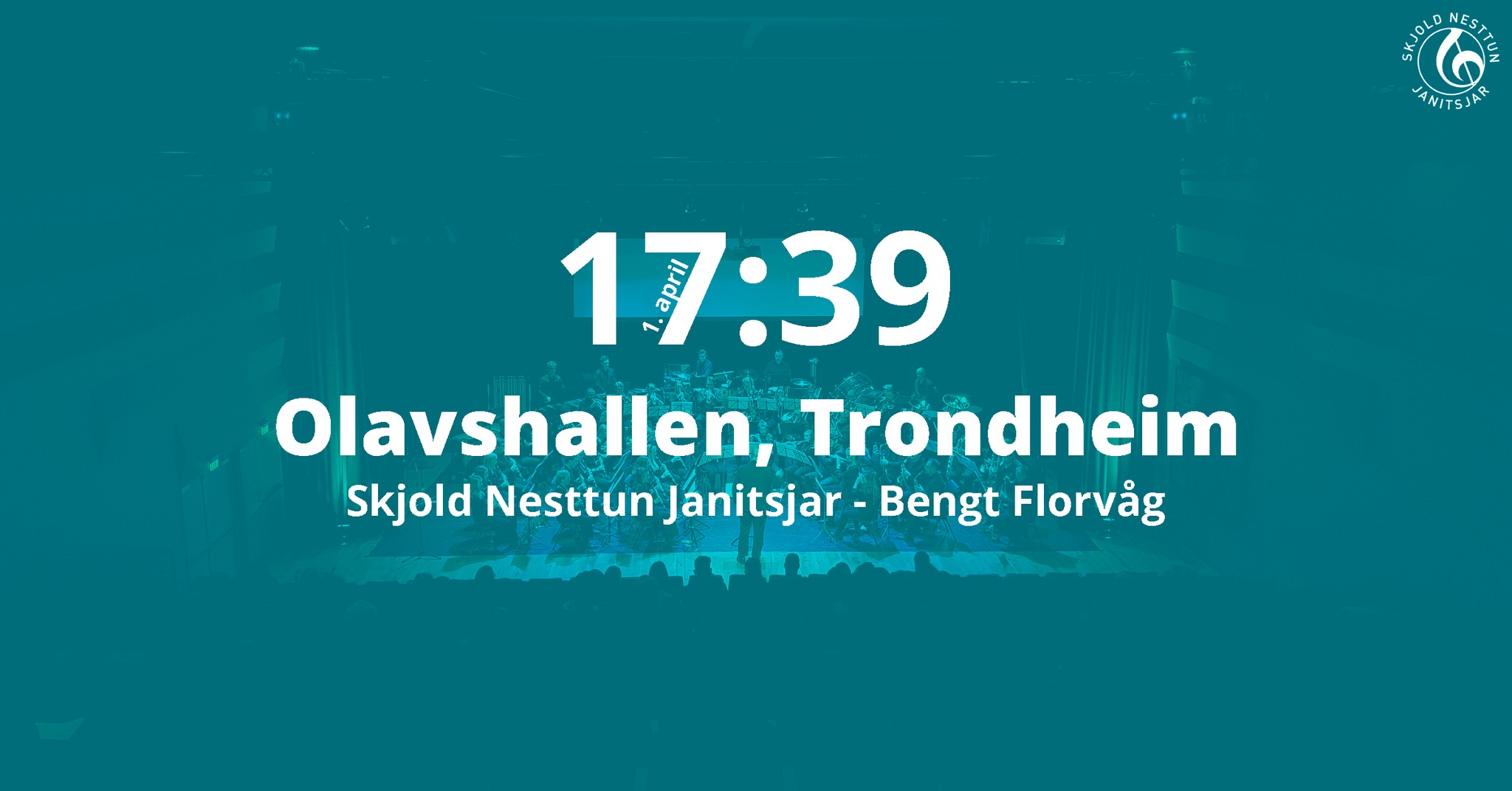 Fredag 1. april klokken 17:39 sitter korpset på scenen i Olavshallen.